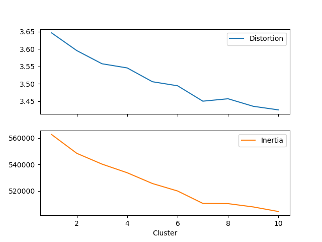 | Cluster | Distortion | Inertia |